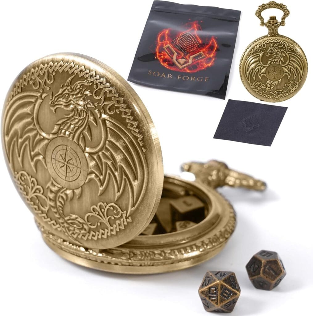 A clever and compact gift idea, this pocket-watch-inspired case opens to reveal a full dice set. It’s both practical and eye-catching, making it a standout piece for collectors or travelers who want to bring their dice on the go.